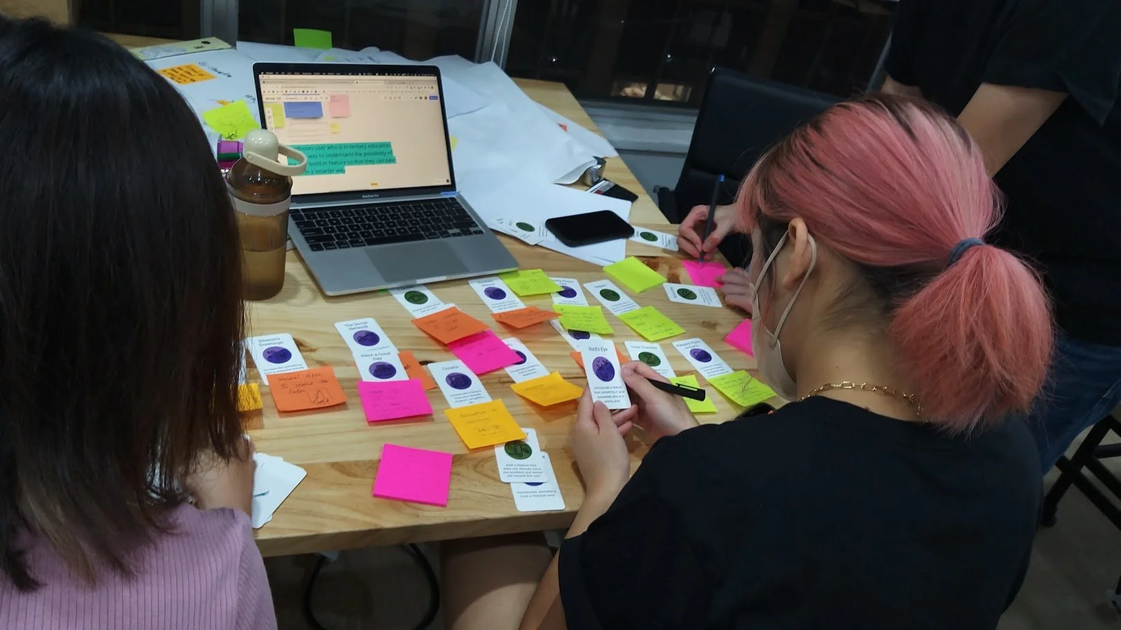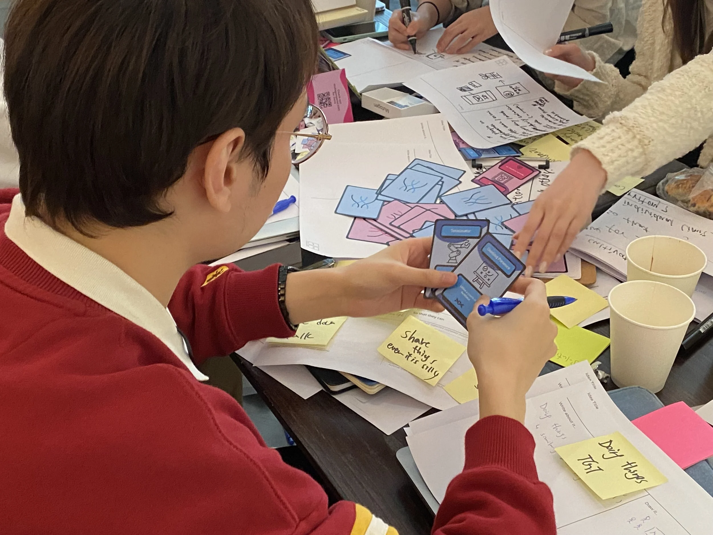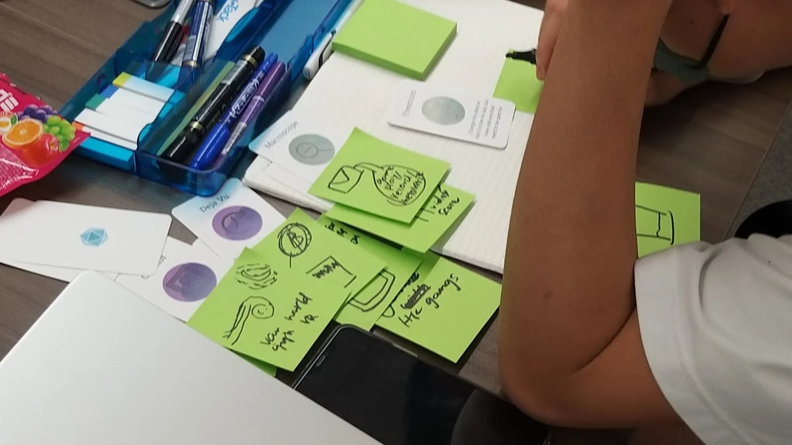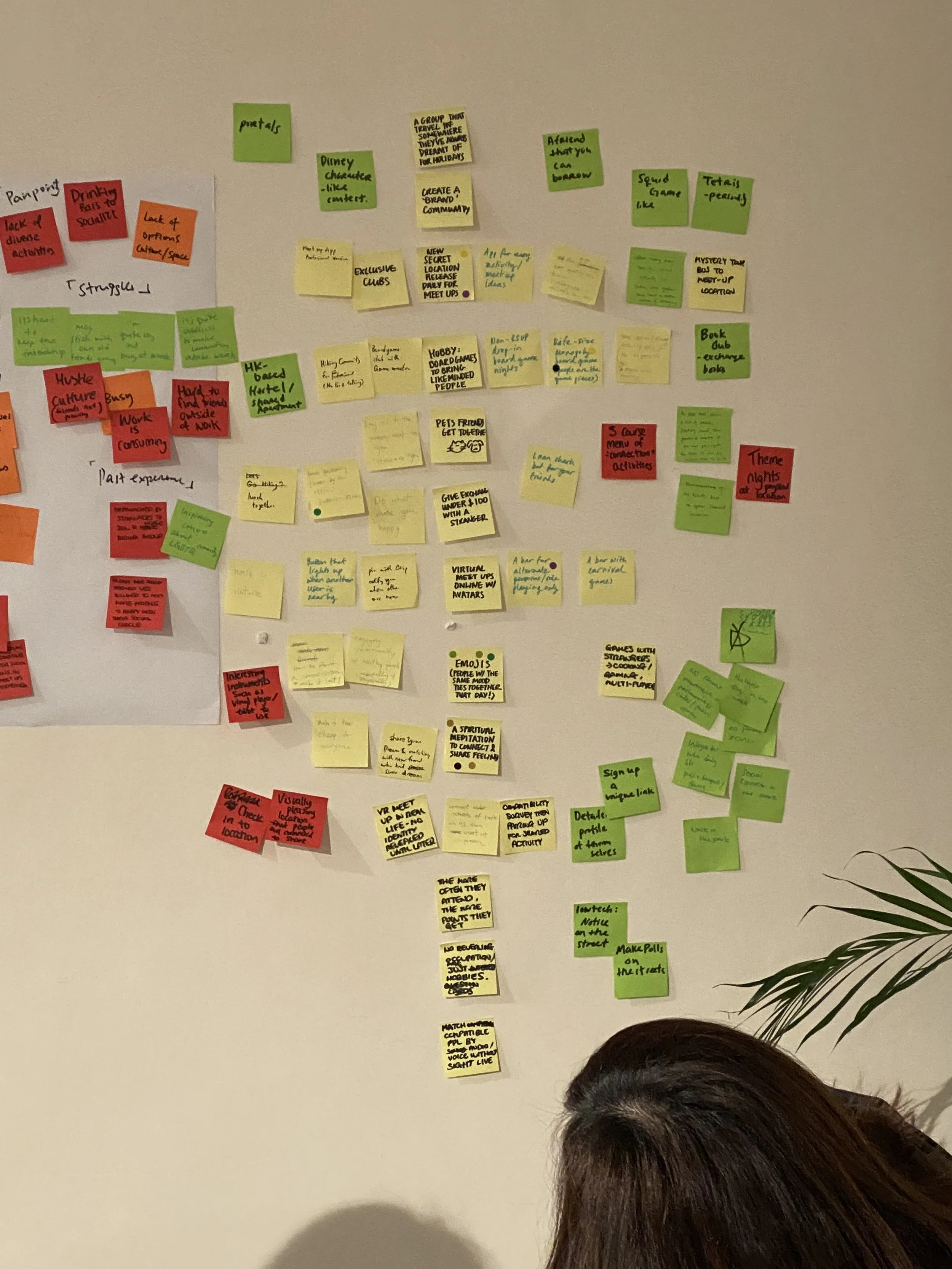 Since people can’t always verbalize or are reluctant to discuss their experiences, I chose to conduct field research and observe how people acted when brainstorming. My field research, combined with follow-up user interviews, revealed a few things: