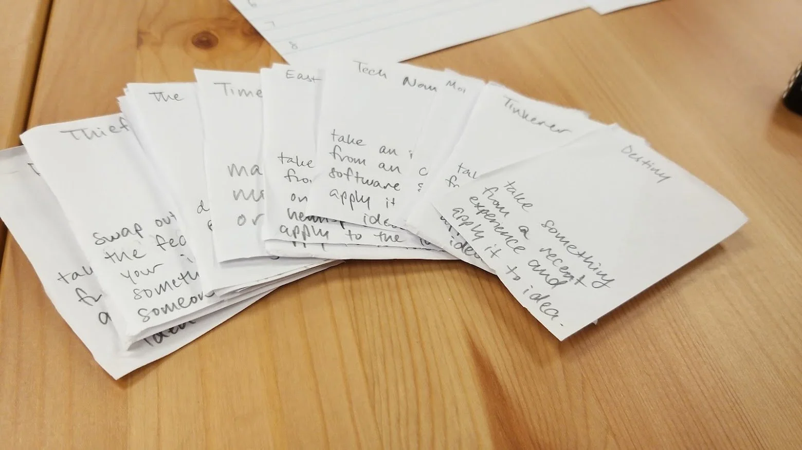 Reducing choice paralysis this way not only helped people come up with ideas, but it also gave them more confidence. What I found is that not only did choice paralysis make it harder to come up with an idea, but it also made users less satisfied with what they created because they thought a better idea might be out there. What would end up happening was that even if users did have an idea in mind, they might not verbalize it, as they would be afraid it would be seen as uncreative or bad. The beauty of card prompts was that it pushed users out of their comfort zones, and any idea they came up with would inherently feel more unique than ideas conjured up using normal brainstorming techniques. With more constraints, people would also come up with ideas faster, as they wouldn’t have to scour all the different ideas they could come up with.