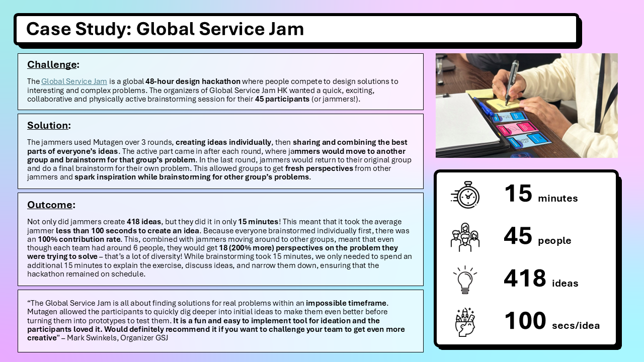 While it might seem counterintuitive, having no constraints isn’t always good for creativity. Mutagen is a gamified brainstorming tool that uses constraints and fast-paced fun to make ideation quicker and more creative.